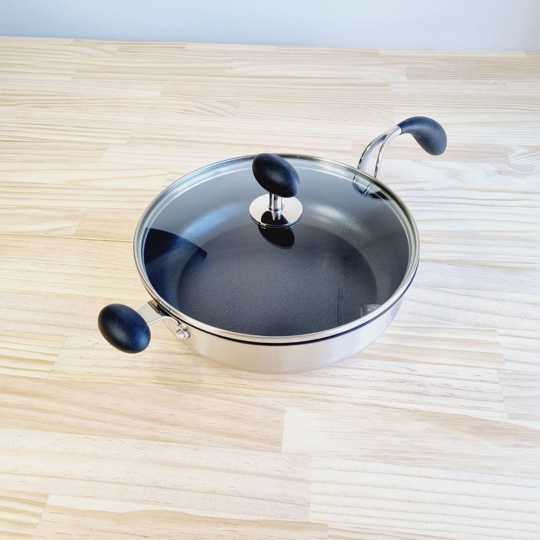 Our sauté pan is perfect for everything from searing and sautéing to simmering and braising—all with effortless control.